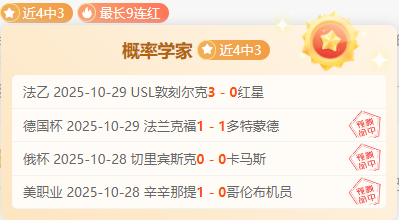 最近更新:2025-10-29 17:30 近4中3最长9连红