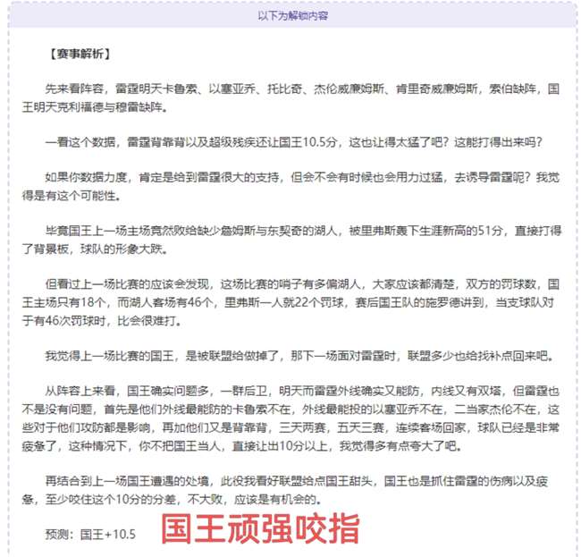 以下为解锁内容:含赛事解析+数据分析+观点参考