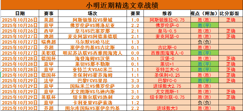 【上期回顾】昨2胜1,芬超大格局+比分全出,近16中14。昨天比赛太少,2胜1保平也能够接受。10月我们几乎一整月都在正向上分,我会统计具体战绩,今天继续加油!