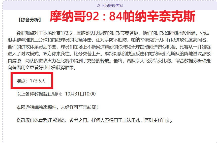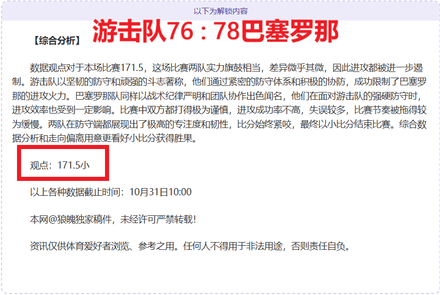 解锁内容包括:综合大数据分析+分解赛事走向+比赛建议+作者观点数据
