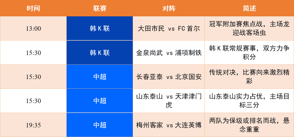 今晚注定无眠!一场横跨东西的足球盛宴将从今日午后激情开启——韩K联、中超率先点燃战火;晚间至次日凌晨,欧洲五大联赛更是好戏连台:不仅有阿森纳、曼联为积分全力出击,更有两场不容错过的巅峰德比:“伦敦德比”热刺火拼切尔西,与“德国国家德比”拜仁死磕勒沃库森,将今夜气氛推向高潮!紧随其后的皇马、利物浦、尤文图斯等豪门压轴登场,为您无缝衔接一个从黄昏到黎明的足球周末!