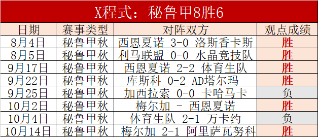 秘鲁甲8胜6发挥出色值得信任。昨6胜4,近19天胜14天+12,上周末两天都是胜利,周末取胜更轻松!