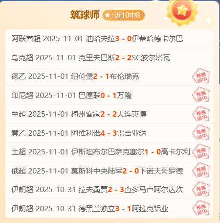 成绩回顾:四连胜后6中4,战绩来到10中8;今天笔者继续秉承宁缺毋滥的精神,只推有质量有信心的比赛而不是数量搭够,确保每一场比赛都有命中率的;今天笔者同样挑选出信心场次,望大伙们可以一起与筑球师研究胜利的观点。