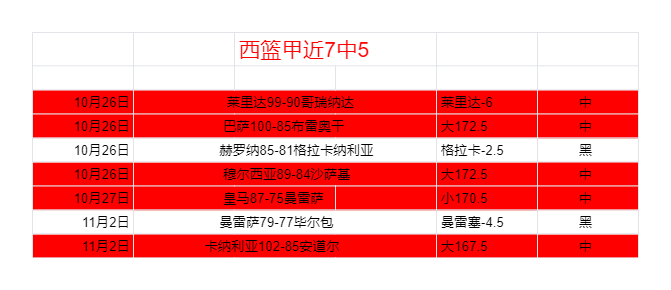 西篮甲近7中5,昨天曼雷萨虽然拿下比赛没有达到预期,不过另外一场大格局没有压力。今天精选三场争取全部拿下,低调前行做好赛前分析走的是长期稳定路线 才是最牛的.