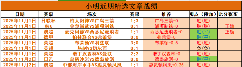 【上期回顾】收!收!收!昨精选7场拿下4胜2平1负,浦项、广岛、布莱顿、诺丁汉全出,西悉尼和弗莱堡打平,近9仅负1。周六7场只错1场,表现非常不错,周日争取继续打出净增,完美收官。