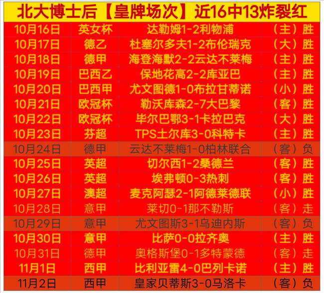每晚仅一场【皇牌场次】近16中13;昨晚皇家贝蒂斯3:0马洛卡,遗憾失利。长线近44场拿下31场 依然很稳;适合长期定投的老板;今晚继续荷乙超信心出击,每天必打场次: