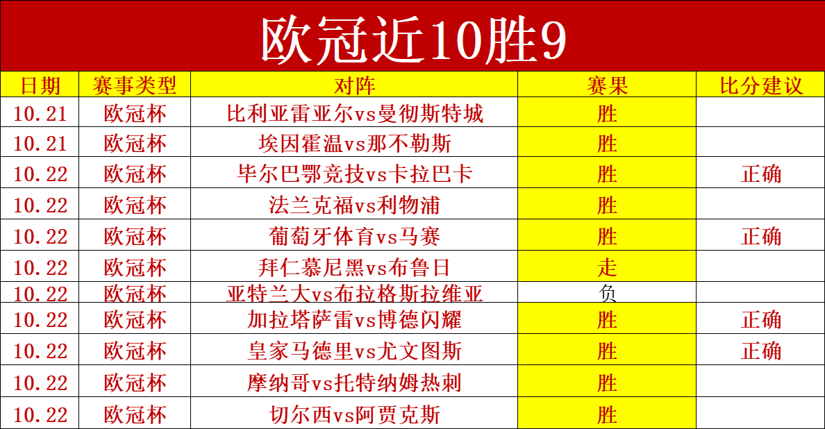一、战绩回顾:昨天表现不错,7场仅失2场,并且命中2场比分,今天迎来笔者的强项亚冠和欧冠杯,特别是欧冠杯,近期10胜9的佳绩,敬请期待。