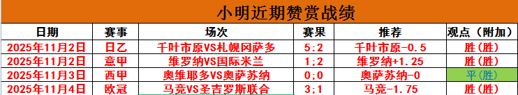 【上期回顾】昨整体2胜3负,精选武里南联比分+方向打出。赞赏1胜1,马竞打出,赞赏近4场3胜1平。昨天赞赏继续全胜,精选欧冠打的不好,有波动属于正常容错。今天会调整思路,加油。