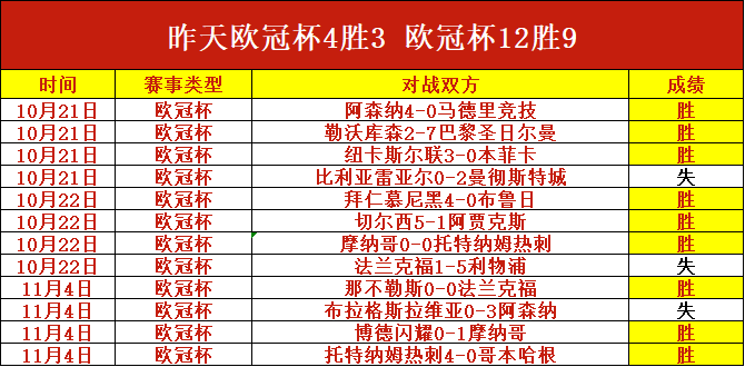 昨天欧冠杯4胜3,拿下欧冠杯12胜9!今天赛事依旧选择强项系列,持续稳,别错过了!笔者近期前进脚步表现仍然优秀,本日赛程继续出击,争取在稳健的基础上进一步突破!