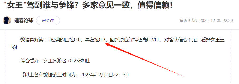 伤情实时动向+逢春独家彩超四维扫描解读+方向+比分+临场变化解读】