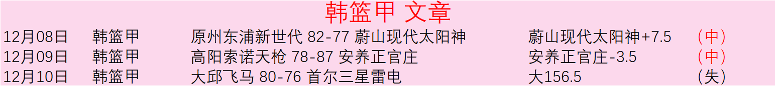 原州东浦新世代上赛季是23胜31负的成绩,进攻端76火力数据左右,防守端78失分数据左右,主场是14胜13负,客场是9胜18负的成绩。原州东浦新世代上赛季无缘季后赛,表现一般般。近期赛事,2025-12-08原州东浦新世代82-77 [41-44]蔚山现代太阳神,2025-12-06釜山宙斯盾80-77 [40-56]原州东浦新世代,2025-11-20原州东浦新世代84-79 [37-51]首尔三星雷电,本场比赛一起看看。