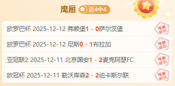 成绩回顾:昨日三场比赛以全胜之姿拿下,斩获4连胜,近期成绩12胜10。感谢一直以来的支持与陪伴,今天看好不错的赛事,强项赛事很有信心,鹰雁也曾创下19连胜的超高记录。愿大家在观赛的同时,也能收获满满的喜悦与惊喜,觉得还行的不妨继续关注,一起开启精彩的足球之旅。