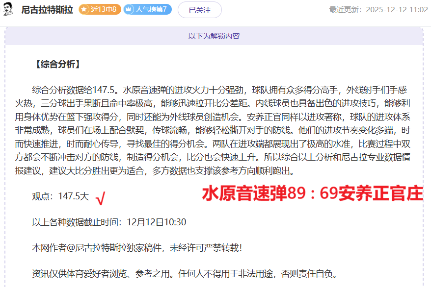 解锁内容包括:综合分析+比赛建议(数据观点+附加观点)