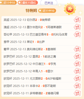 【战绩回顾】昨天完场赛事全胜!目前近11场胜10场十分出色。特纳姆将凭借多年深耕足球领域的专业视角,结合独家赛事分析方法,深度解析赛果走向。诚邀各位球迷朋友共同交流探讨,让我们携手冲击高效战绩!