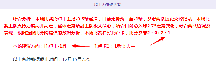 解锁内容包括:综合分析+胜负观点+比分观点