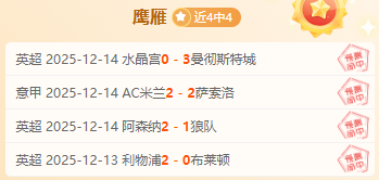 成绩回顾:昨日拿下两场欧赛,近期成绩5胜4。感谢一直以来的支持与陪伴,今天看好不错的赛事,强项赛事很有信心,鹰雁也曾创下19连胜的超高记录。愿大家在观赛的同时,也能收获满满的喜悦与惊喜,觉得还行的不妨继续关注,一起开启精彩的足球之旅。