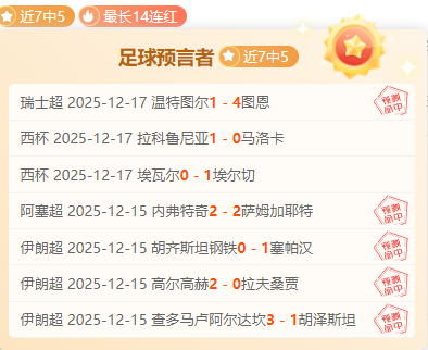 最近更新:2025-12-17 13:48 近7中5最长14连红