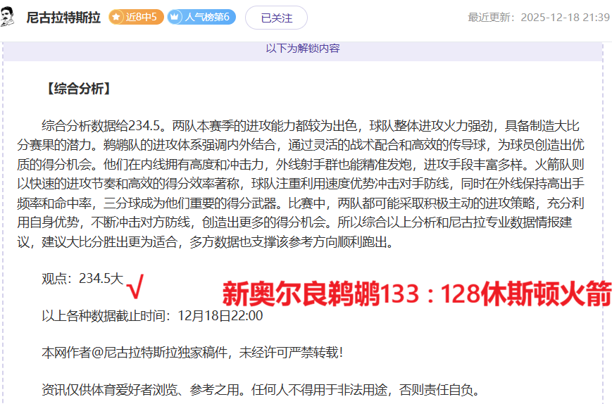 解锁内容包括:综合分析+比赛建议(数据观点+附加观点)