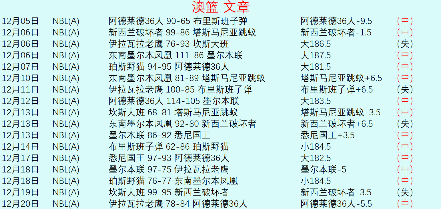 儒墨心语:做好做足功课,认真分析每一场赛事,争取更好的回馈大家的期待,加油。近期文章,西篮甲3中3,澳篮17中13,韩篮甲4中3,CBA4中3,Euro5中3,足球8中6,
