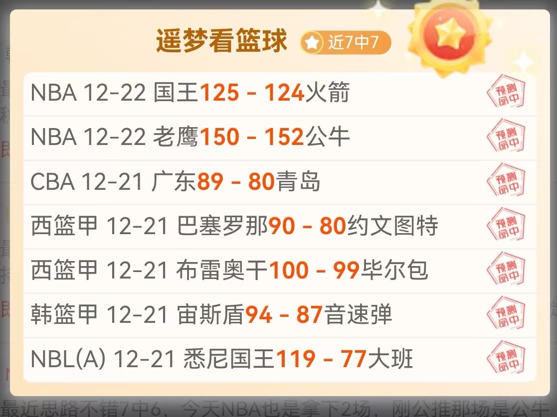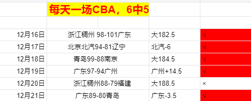 各项篮球赛事7连胜,每天一场CBA近6天拿下5天还是比较成功的,共同进步~
