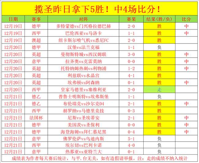 成绩回顾:近18胜13,胜比高达72%!昨日拿下5场胜利,命中4场比分,继续保持正向增长,今天我们再接再厉!