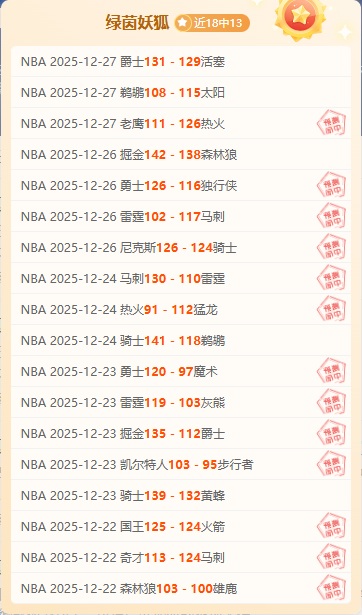来啦来啦,昨日休息了一天,前天1胜1负,还有一场命中了大,小没命中方向,本周20中13(标识:18中13),状态还是很稳定,今日再带来几场信心NBA,跟着妖狐冲吧!