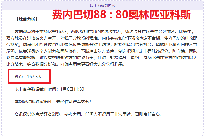 【成绩回顾】昨3场胜利,CBA、Euro2场取得胜利!新一期赛事继续关注赛事延续胜利,作为本网资深作者和篮球分析师实力有目共睹,擅长拆解数据用意,连胜佳绩历历在目,笔者将再接再厉争取得更佳战绩回馈粉丝,本场比赛将精选一场优质情报,敬请关注。