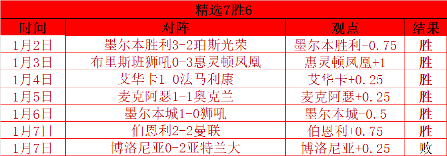 昨天两场精选赛事2胜1,目前精选7胜6;今天我会继续努力,一场公推,一到两场精选,做精做好,一起加油!
