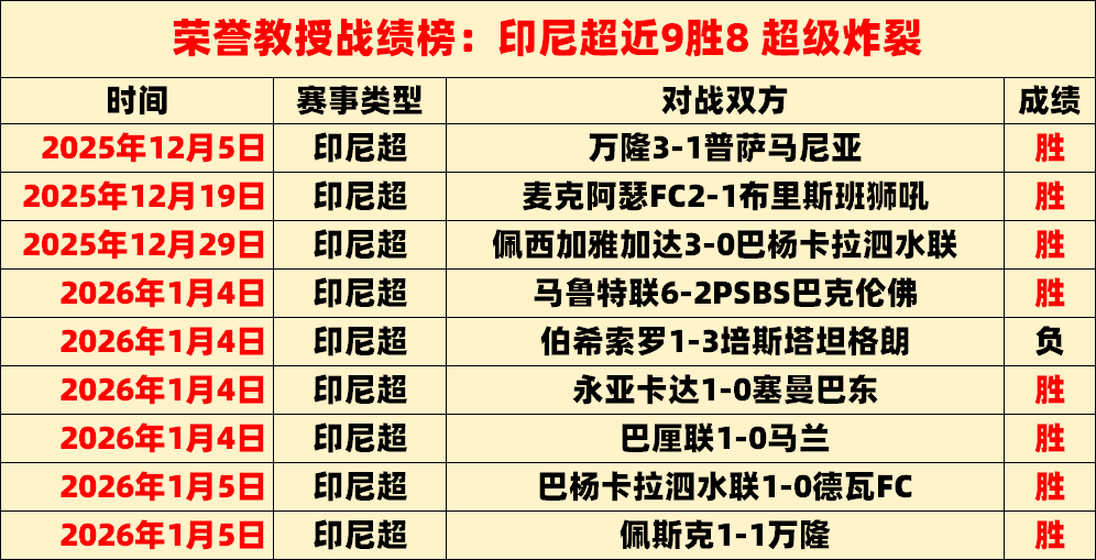 印尼超9胜8,超级炸裂,最高打下14连胜的表现已见证实力。各线赛事都能保证清晰的解读思路与靠谱的选择方向!截至昨天荣誉教授已经有4505场解读经验,今天继续精选5场,多元化的赛事系列,以更高连胜胜利率绩迎接5000场记录来临,关注荣誉教授,成为荣誉教授的好伙伴!