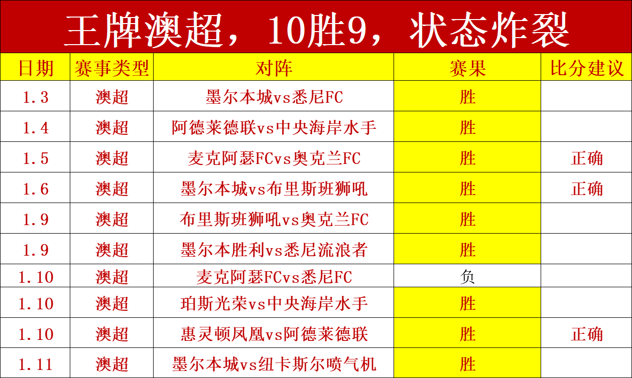 1、早上澳超拿下,下午澳超继续拿下,阿德莱德2比2比分成功命中,王牌澳超不负众望,达到了10胜9的超级战绩,无论是大或小、上路或下路,通通都拿下,澳超的每支球队笔者都滚瓜烂熟,伤停、战意、冷热、数据诱惑等,都全部掌握,期待下周五的澳超,笔者团队已经提前在研究。