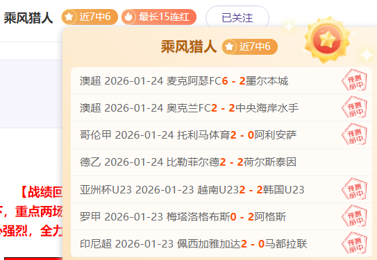 【战绩回顾】豪取7胜6+早场两场澳超全胜!昨亮点越南U23不败+0.75再胜,且比分2:2拿下,重点3场炸裂又全胜,重点场3天全胜+重点6连红15胜13(量少求精选)!今日比赛质量佳!乘胜追击,信心强烈,全力分析,只王牌精研有把握的比赛,继续拿下,加油冲全胜!欢迎长期关注乘风。