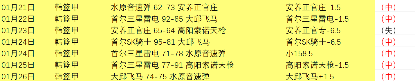 蔚山现代太阳神上赛季是33胜21负的成绩,进攻端81的火力数据左右,防守端79的失分数据左右,主场是16胜11负,客场是17胜10负的成绩。上赛季的季后赛,蔚山现代太阳神3-0淘汰了安养正官专,但是半决赛,0-3不敌昌原LG猎隼,蔚山现代太阳神无缘总决赛。近期赛事,2026-01-24蔚山现代太阳神86-78 [49-39]原州东浦新世代,2026-01-22蔚山现代太阳神78-71 [45-42]首尔SK骑士,2026-01-13蔚山现代太阳神75-74 [39-32]首尔三星雷电。本场比赛一起看看。