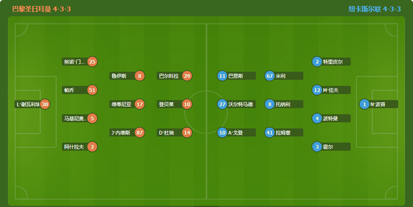 纽卡斯尔联则摆出了强调硬度与反击的阵容。门将尼克·波普经验丰富。后防线由队长基兰·特里皮尔领衔,他的长传是反击起点;路易斯·霍尔在另一侧呼应;中卫马利克·佳夫与斯文·波特曼组成高大强硬的组合。中场铁三角刘易斯·米利、桑德罗·托纳利与雅各布·拉姆塞,任务明确:通过大范围跑动和强硬拦截,绞杀巴黎的技术型中场。锋线上,安东尼·戈登与哈维·巴恩斯两位速度型边锋负责突击;中锋尼克·沃尔特马德需作为支点衔接进攻。球队战术思路清晰:立足坚固防守,利用身体对抗破坏对手节奏,并通过高效的反击与定位球寻求制胜机会。