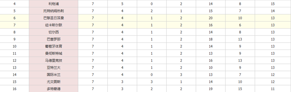 真正的混战出现在第三至第十六名之间——短短4分之内,竟拥挤着14支球队,每一支都仍握有直通淘汰赛的希望。皇马、利物浦同积15分,热刺14分紧咬,而巴黎、纽卡斯尔、切尔西、巴萨、葡萄牙体育、曼城、马竞、亚特兰大均积13分,国际米兰和尤文图斯12分,多特蒙德11分……每一场比赛的结果,都可能彻底改写排名格局。