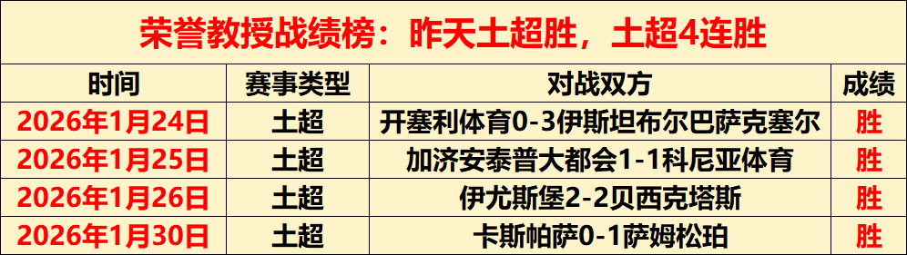 昨天5胜4,连胜6天,土超4连胜,最高打下14连胜的表现已见证实力。各线赛事都能保证清晰的解读思路与靠谱的选择方向!截至昨天荣誉教授已经有4615场解读经验,今天继续精选5场,多元化的赛事系列,以更高连胜胜利率绩迎接5000场记录来临,关注荣誉教授,成为荣誉教授的好伙伴!