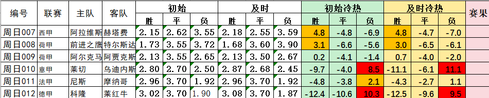 【数据栏目简介】本人独家研制了必发冷热系数、北单偏离系数和实力系数,对于捕捉冷门比赛具有较大帮助,博士致力于提供有价值的比赛数据,以提高大家分析比赛的效率。冷热系数是反映比赛冷热程度的指标,偏离系数是反映积构意见分歧的指标,实力系数是反应球队定位的指标,不同数据使用方法不同。对于不熟悉数据使用方法的朋友,请查看下面多篇教程。但足球毕竟是圆的,比赛结果是球员实打实踢出来的,并不是靠这些数据计算出来的比赛结果,各种数据只是辅助我们预测比赛结果而已,我们更倡导授之以渔,希望通过我们的数据提高您分析预测比赛的准确性。