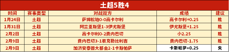 成绩汇报:土超5胜4,昨天3连胜,笔者近期前进脚步表现仍然优秀,本日赛程继续出击!