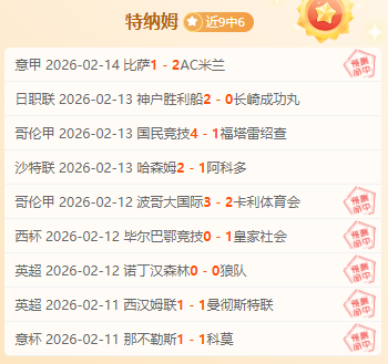 【战绩回顾】近期成绩9胜6。特纳姆将凭借多年深耕足球领域的专业视角,结合独家赛事分析方法,深度解析赛果走向。诚邀各位球迷朋友共同交流探讨,让我们携手冲击高效战绩!