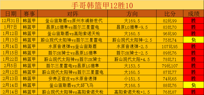 韩篮甲12胜10,王者级别的精彩胜利。近33场胜21贡献胜+9,近34天胜19天胜+19,胜+数值得骄傲