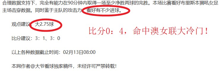 状态大好命中澳女联大冷门!本场有冷门?