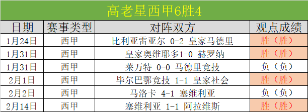西甲昨天胜利,目前6胜4表现出色信心充足。二月过去13天胜9天,累计胜+5,二月表现出色