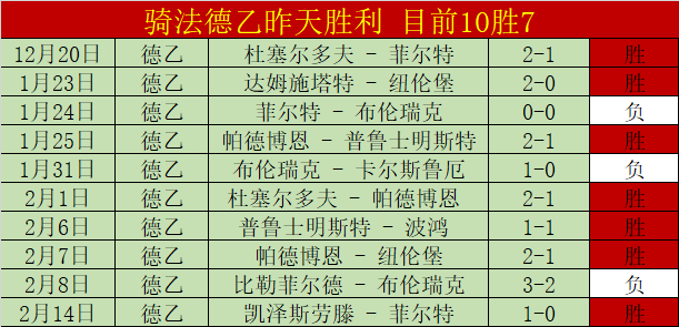 德乙昨天胜利,当前10胜7表现状态很好。昨天7胜5,连胜3天,近36天胜25天+17,胜+数值非常精彩