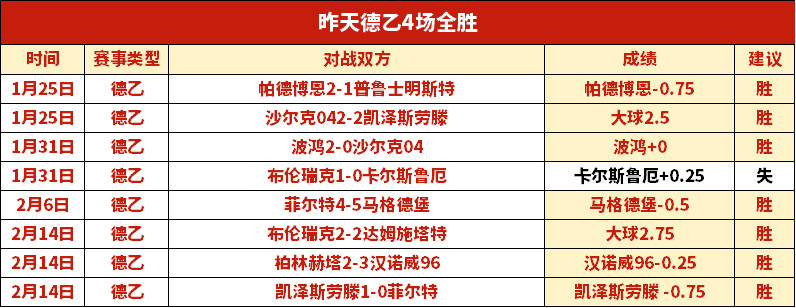 成绩汇报:昨天德乙4场全胜打出,表现相当炸裂,近3天净胜+5,笔者近期前进脚步表现仍然优秀,本日赛程继续出击!